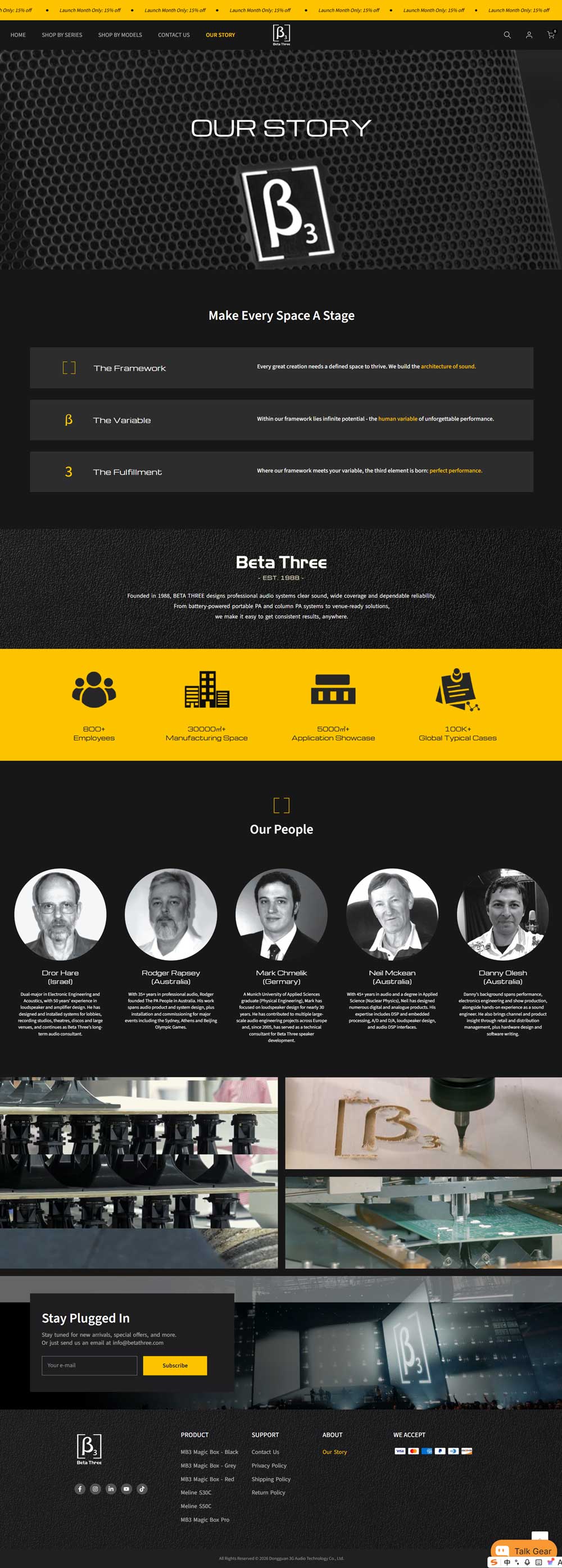 BETA THREE 希望打造一个面向全球市场的品牌独立站,展示其专业音响产品,提升在线形象,并简化客户购买与了解产品的流程。他们需要一个既能体现品牌专业性,又具备出色用户体验的电商平台。